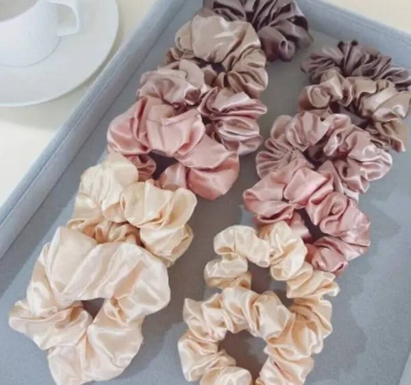 De scrunsies zijn van zacht en flexibel materiaal waardoor het haar niet wordt beschadigd en de stiekjes ruim kunnen rekken zonder snel te breken. Daarnaast zijn ze erg mooi om te zien en hebben ze een luxe uitstraling. Dit maakt dit type scrunsie erg gewild en populaire en hebben daarom in elke winkel of marktkraam een ontzettende hoge doorverkoop. Deze mix bestaat uit roze en champagne kleuren zowel donker en licht.